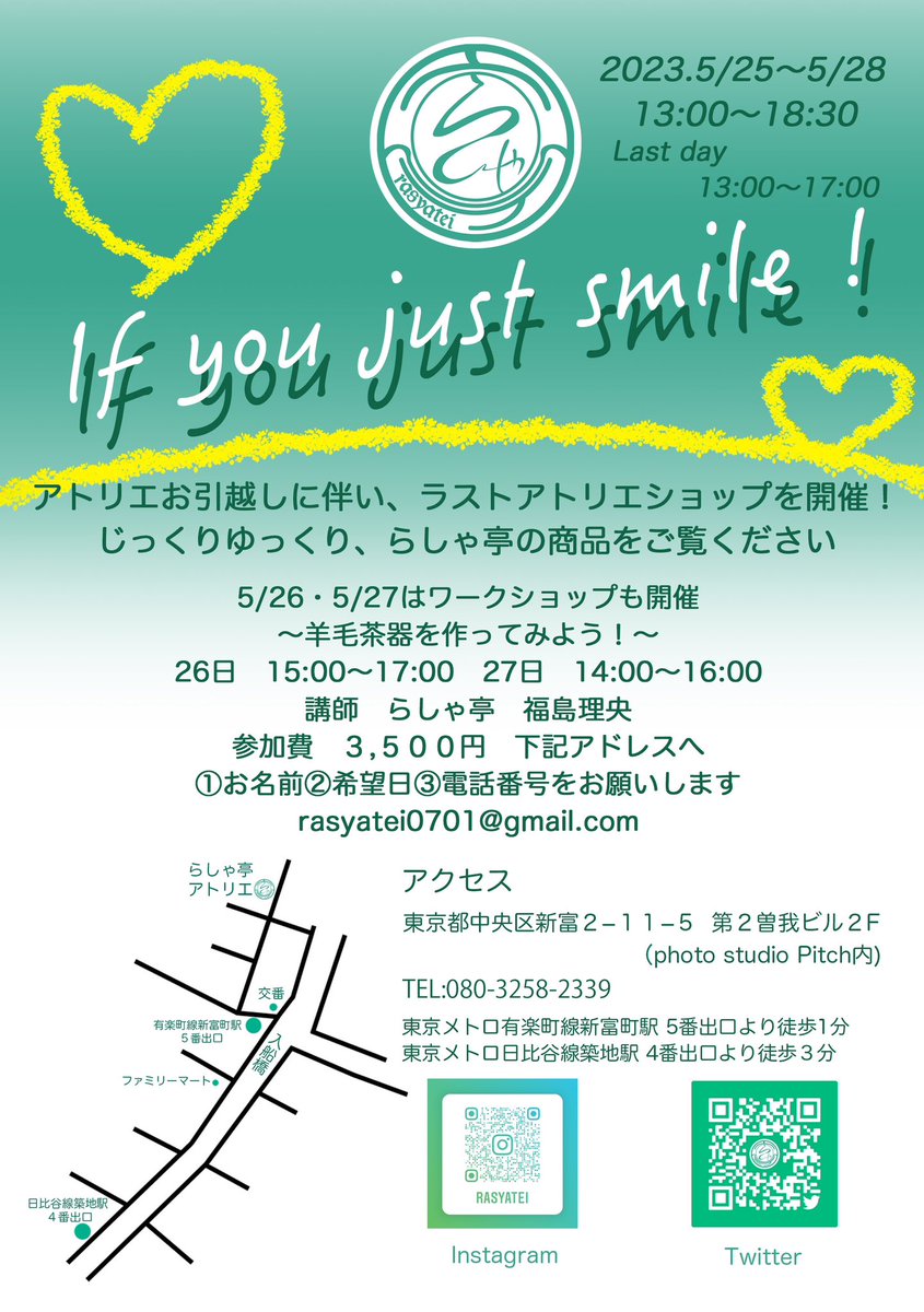 3 3 らしゃ亭ラストアトリエショップ 2日目始まりましたー! 皆様のお越しをお待ちしております♪ #羊毛フェルト 23/05/26 13:03