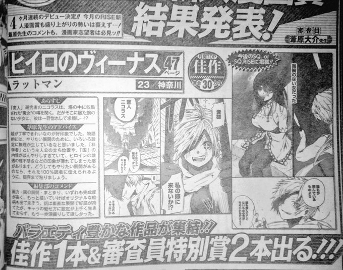 【ご報告】 RISE新人漫画賞5月期の佳作いただきました! ジャンプSQデビューします!!! 10月のジャンプSQ.RISEに掲載予定です! どんっどんお披露目できるよう頑張ってくのでよろしくお願いします!!
