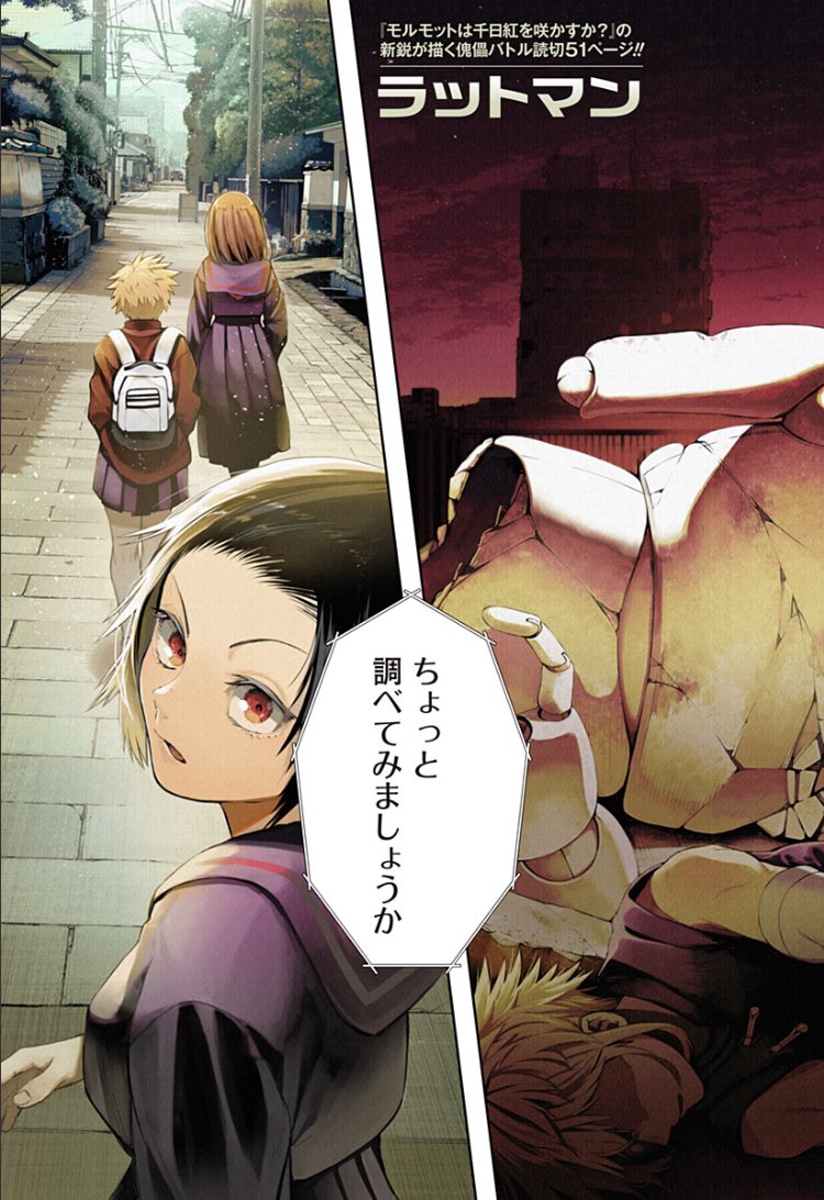 今週のジャンプに告知載ってました! 6月9日(金)ジャンプ+にて新作読切「憑躯(つく)」載ります! 堅物JKと人形がホラー!アクション!コメディ!する話です ラットマン流のド王道です 当日もリンク貼るので要チェックよ