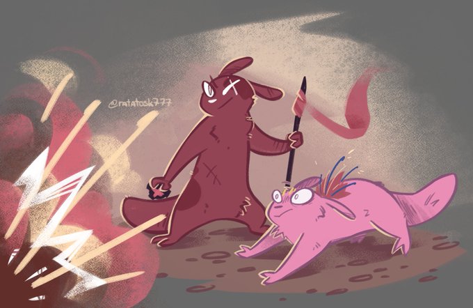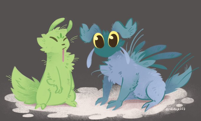 I've been thinking about caterators for some time lately. and now I finally have time to draw them!! look at them spending time with their pets/slugkids #Rainworld