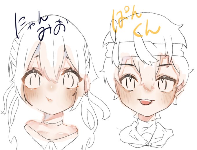 みおちゃんのツイートを見て、ぱんくんの朝ランを見ながら描いたお2人🥳🥳肌だけですが🙌 #ぱんみおてぇてぇ #みおあーと #ちんぱんあーと