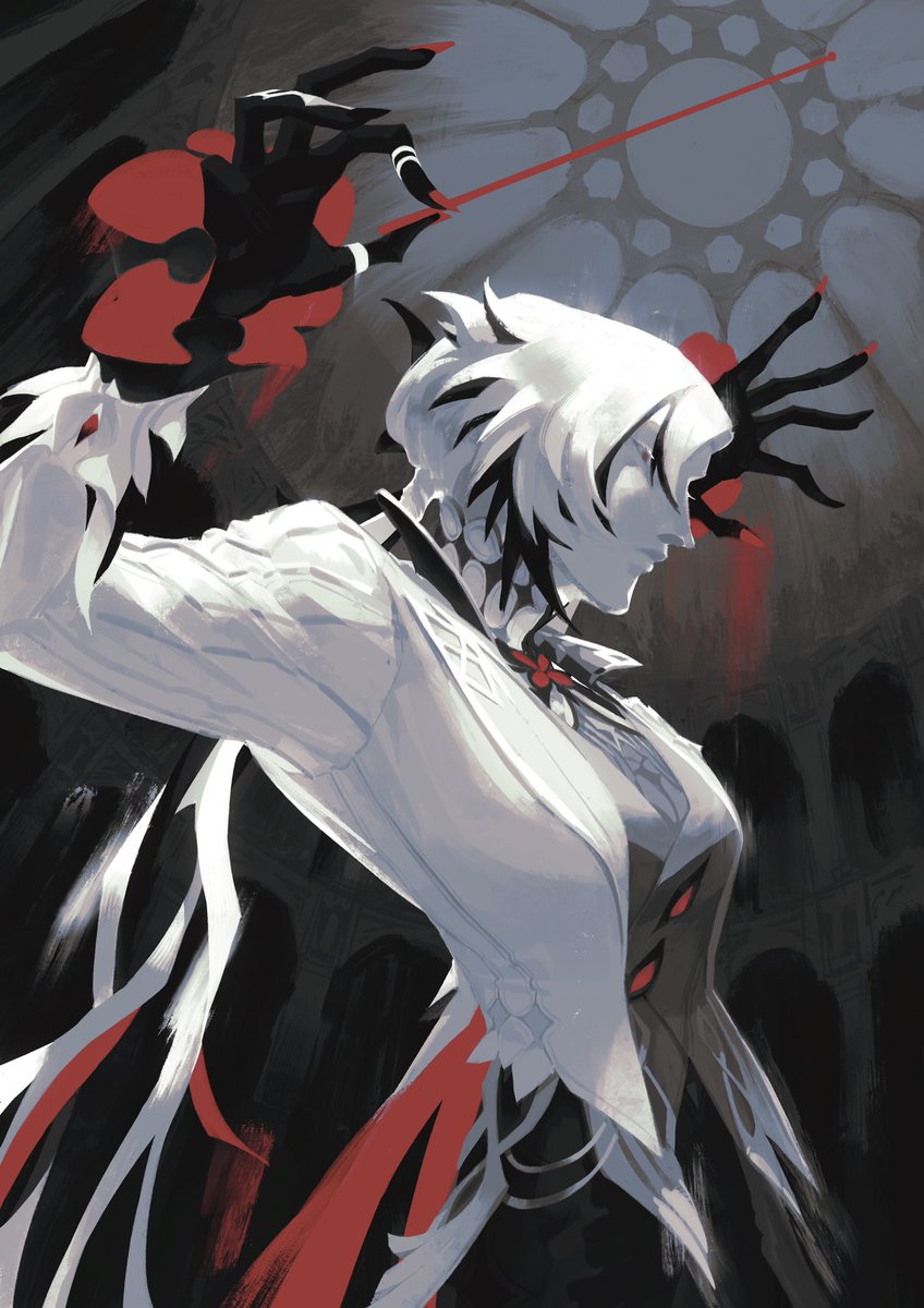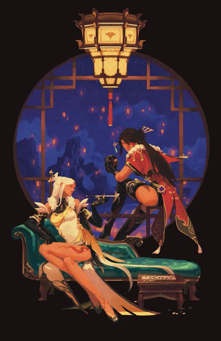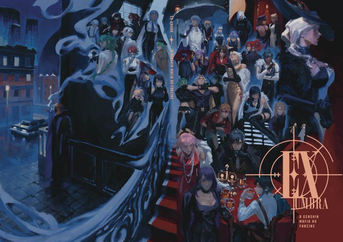 HEY GUYS.... PREORDERS R FINALLY OPEN SO I CAN FINALLY SCREAM ABOUT THIS SO. here is the full cover i worked on as a guest page artist on the Ex Umbra zine!!!! 😭😭😭😭 (links below) twitter.com/TeyvatMafia/st…