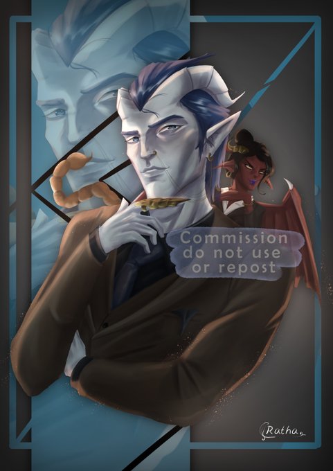 Tiefling commission for an instagram supporter. Had a lot of fun drawing Andromalius and her lovely secretary Karen. #DnD #dndart #DnDcharacter #tiefling #illustrationart #ArtistOnTwitter