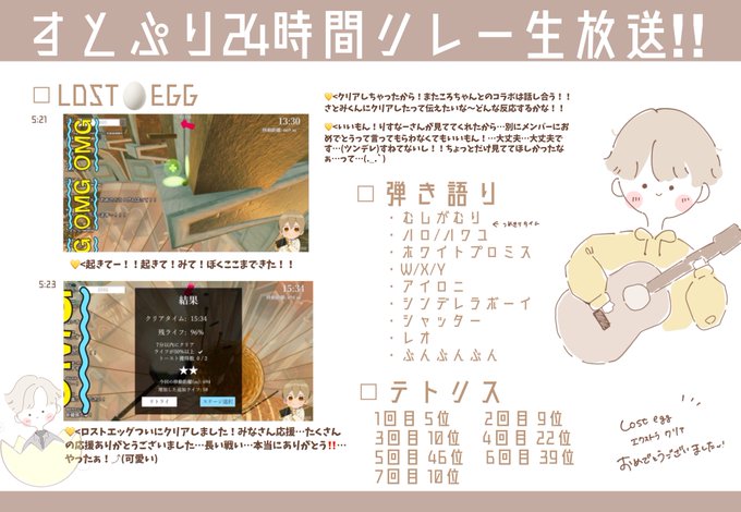 るぅとくんソロ枠お疲れ様でした~!!楽しすぎて3時間があっっという間でした🥰 LOSTEGGのクリアの瞬間を見れて幸せです!感動しました🥲🍳💛 朝からるぅとくんの弾き語り聞けて最高の朝です☀️ おつるぅと! #るぅとくん #すとぷり24時間リレー生放送 #すとぷりギャラリー