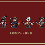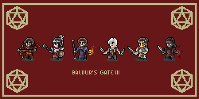 And since Baldurs Gate is popular, an old pixel mini art I made when the game released in Early Access. My half elf Ranger and the party at the time. #baldursgate3 #pixelart