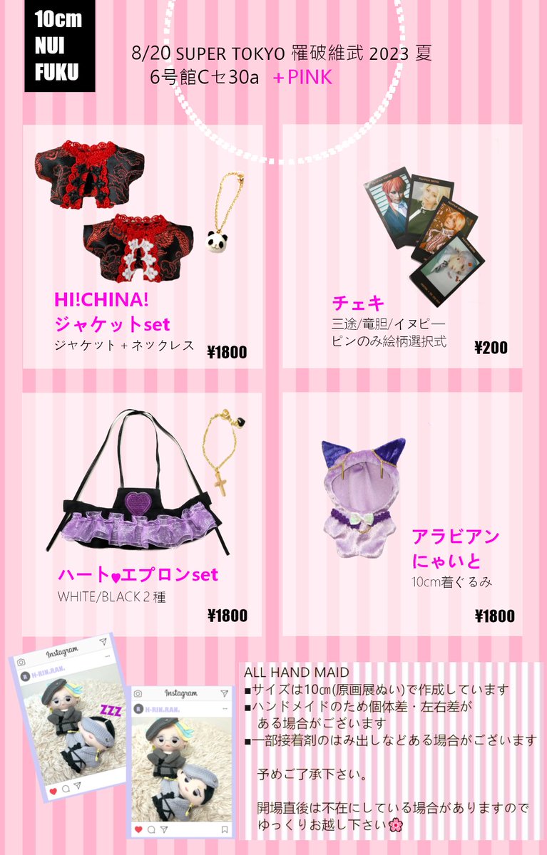 ___8/20お品書き___ SUPER COMIC CITY 関西 29 SUPER TOKYO罹破維武 2023夏 ✝6号館C セ30a✝ 10cmぬい服頒布致します👗チェキは個人チェキのみで柄選択式です🫰当日は夕女さんとイヌココでいるので遊びに来てください💝