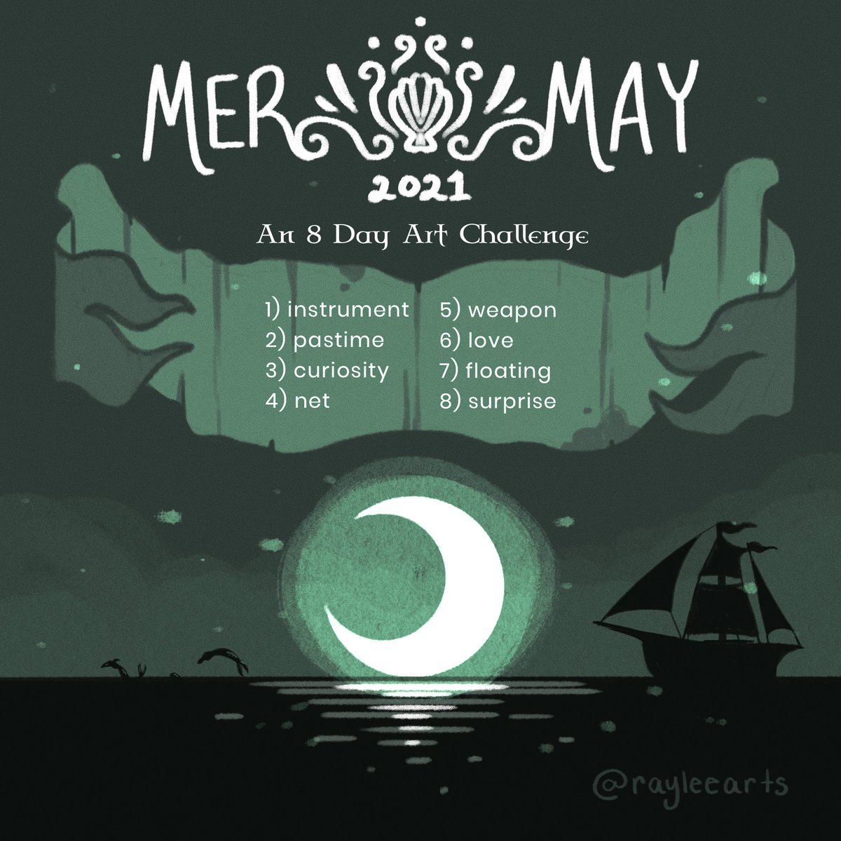 My prompt list for #mermay2021 ! If anyone would like to use it then use #rayleemermay so I can see 🧜🏻♀️