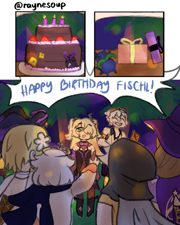 Happy birthday again to my beloved Fischl 💕💕 REPOSTING THESE THREE PAGES BC THEY'RE MY FAVE (´ ε ` )♡ #Fischl #bennett #BenneFischl #GenshinImpact #genshinimpactfanart