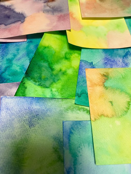 花描いたんですけどバラっとした方が綺麗な気がしてカッターで切り出して無造作に広げてみた。なんか良い…気がする。 #watercolor #watercolorpainting #水彩画 #水彩 #アナログ絵