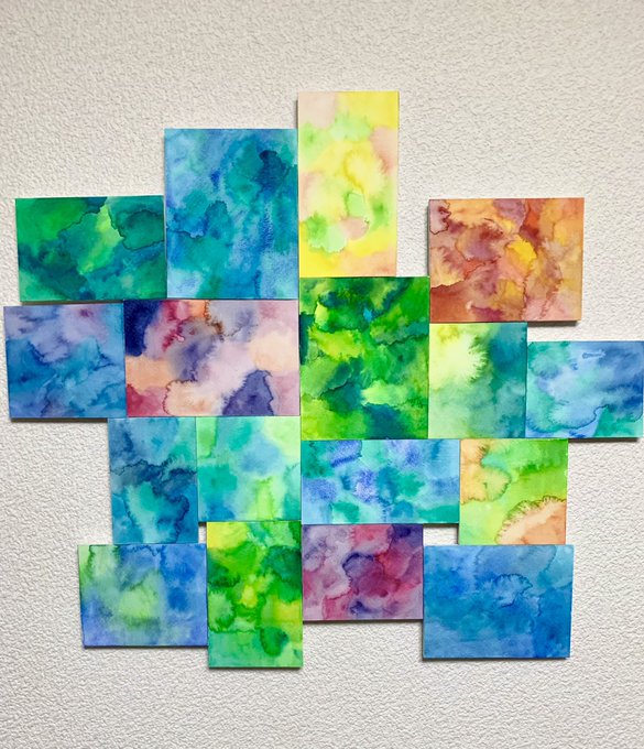 縦535mm×横586mm 透明水彩画をスチレンボードに貼り付けて構成。 #paint #painting #painter #watercolor #watercolorpainting #art #abstract #abstractpainting #abstractart #水彩画 #水彩 #透明水彩 #手描き #アナログ絵 #アート #抽象画