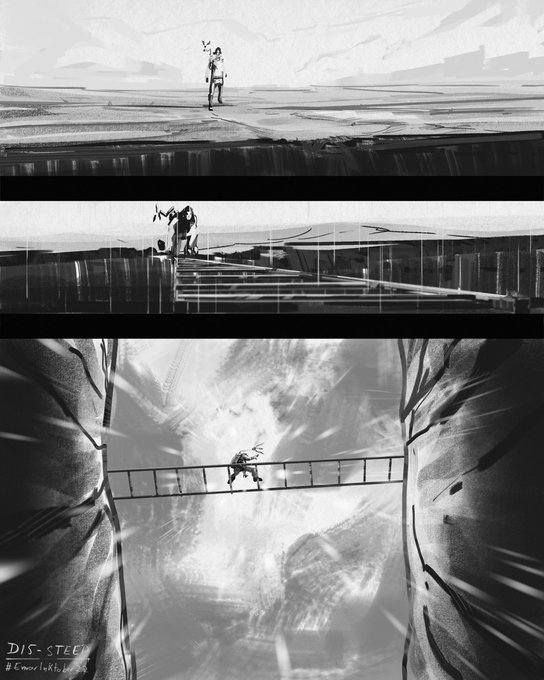 D15 - Steep #inktober #envarinktober22 Based on Death Stranding storyboards by Dan Milligan, one of my favorite artists. #art #digitalart #doodle #draw #drawing #paint #painting #digitalpaint #digitalpainting #sketch #quicksketch #krita #artistoftwitter