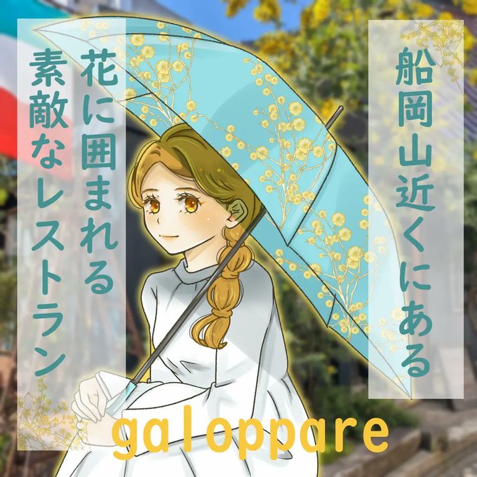 建勲神社近くにある 『#イタリア食堂ガロッパーレ』 美しいミモザに囲まれたお店で 美味しいランチを頂いてきました✨ #みんなで北区を盛り上げたい #北区ランチ #京都ランチ #イラスト #illustrator