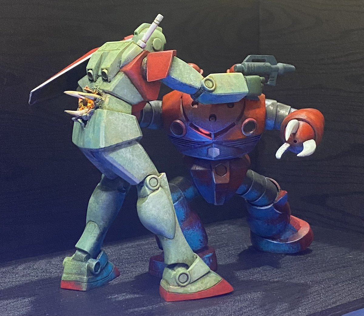 #あなたのキレイな作品とヨゴレタ作品を見せてください 1枚目がパチ組。 2枚目がそれを汚した奴。 ドライブラシ、墨入れ、ウォッシング、ダメージ入れ。 楽しかった♥ でもこれどこに行ったか行方不明w 多分我が家の樹海の中。