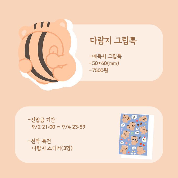 🐿다람지 에폭시 그립톡🐿 📅 9/2 21:00 ~ 9/4 23:59 📎witchform.com/deposit_form.p… 자세한 사항은 윗치폼에서 확인해주세요! 추가 공지, 진행 상황은 타래로 이어집니다🙌