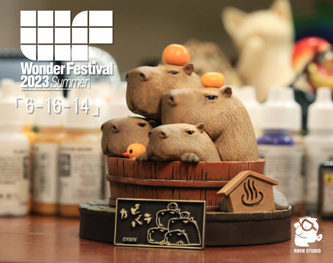 7/30開催のワンダーフェスティバル 卓番「 6-16-14 」 新しい作品ですね。 1.「孤独なカピバラさん」 未塗装・未組立のキット 価格:4000円 全高6.2cm 2.「混雑するカピバラさんたち」 未塗装・未組立のキット 価格:8000円 全高9.5cm… twitter.com/i/web/status/1…