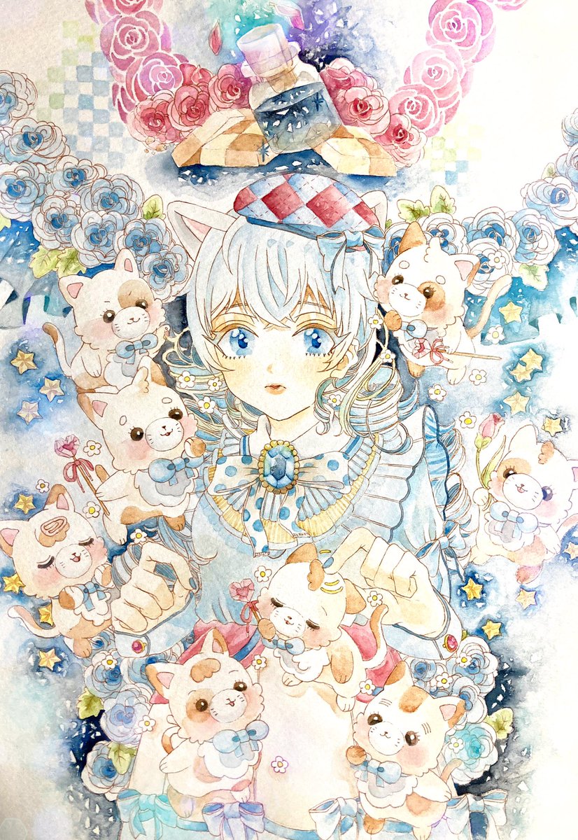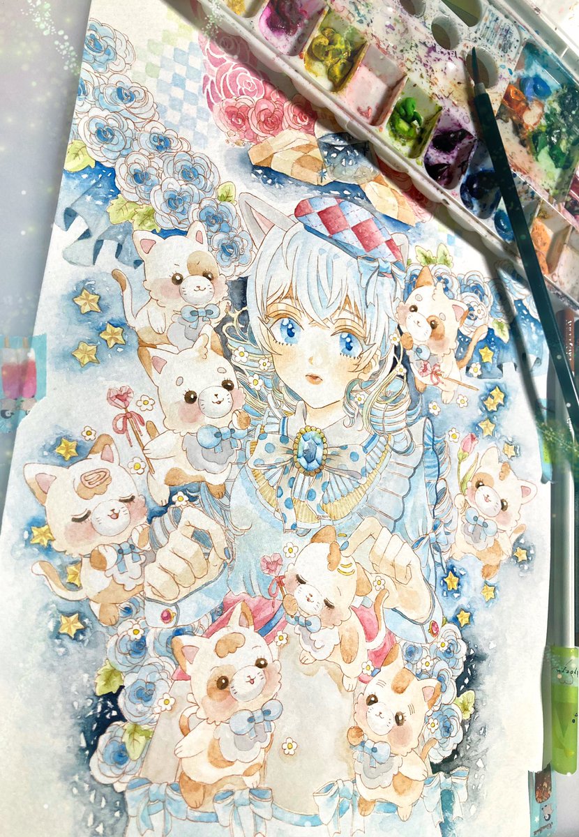 #水彩 #イラスト 💜🔮🧪🥂🌈🥀🕷💍👑🪡 やっと完成!魔法使い🪄 🧵🪢👠🧚♀️☀️🍄🍀🐀🍰🍭