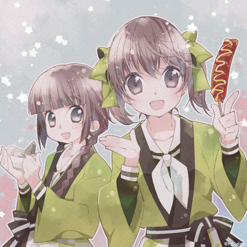 マリみてワンドロ:お題「特別でないただの一日」 「はい、祐巳さん。フランクフルト盛ってニッコリ笑って」by蔦子さん 二人描いたのが敗北だったー(20分オーバー…と、言い張る) #マリみて版深夜のお絵描き60分一本勝負