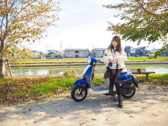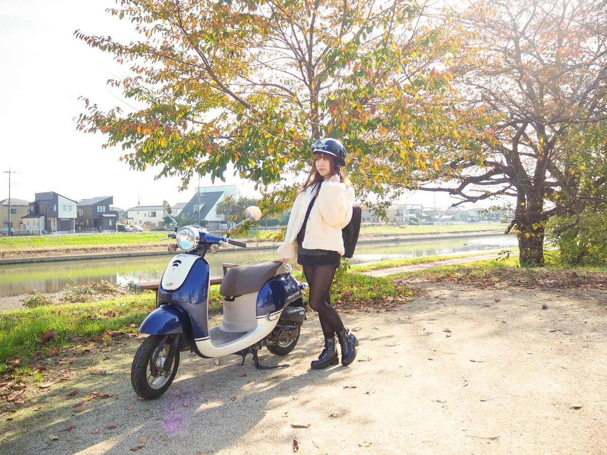 【portrait_2】honda/giorno まだ紅葉には早かったのが残念だけどちょっと秋っぽいの撮れた #ポートレート #portrait #バイクとセルフポートレート #セルフポートレート