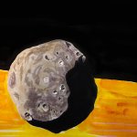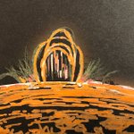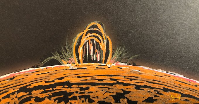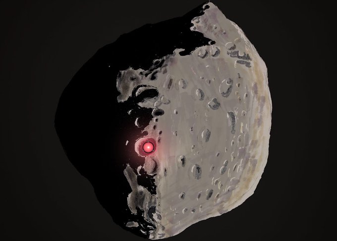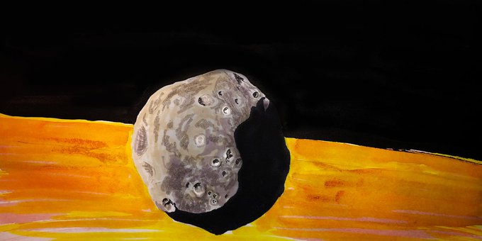 Day Twenty two of #SpaceInktober. The terminator of Saturn’s inner moon Epimetheus. And red glow because TERMINATOR! #PlanetInktober #Inktober2019