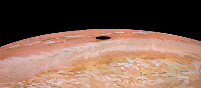 Day 11 of #SpaceInktober. Jupiter's moon IO casts it's shadow on the surface. #Eclipse #Planetinktober #Inktober2019