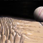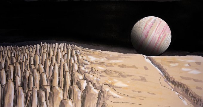 Day Thirteen of #SpaceInktober. A landscape of ice spires on Jupiter’s moon Europa #Planetinktober #inktober2019