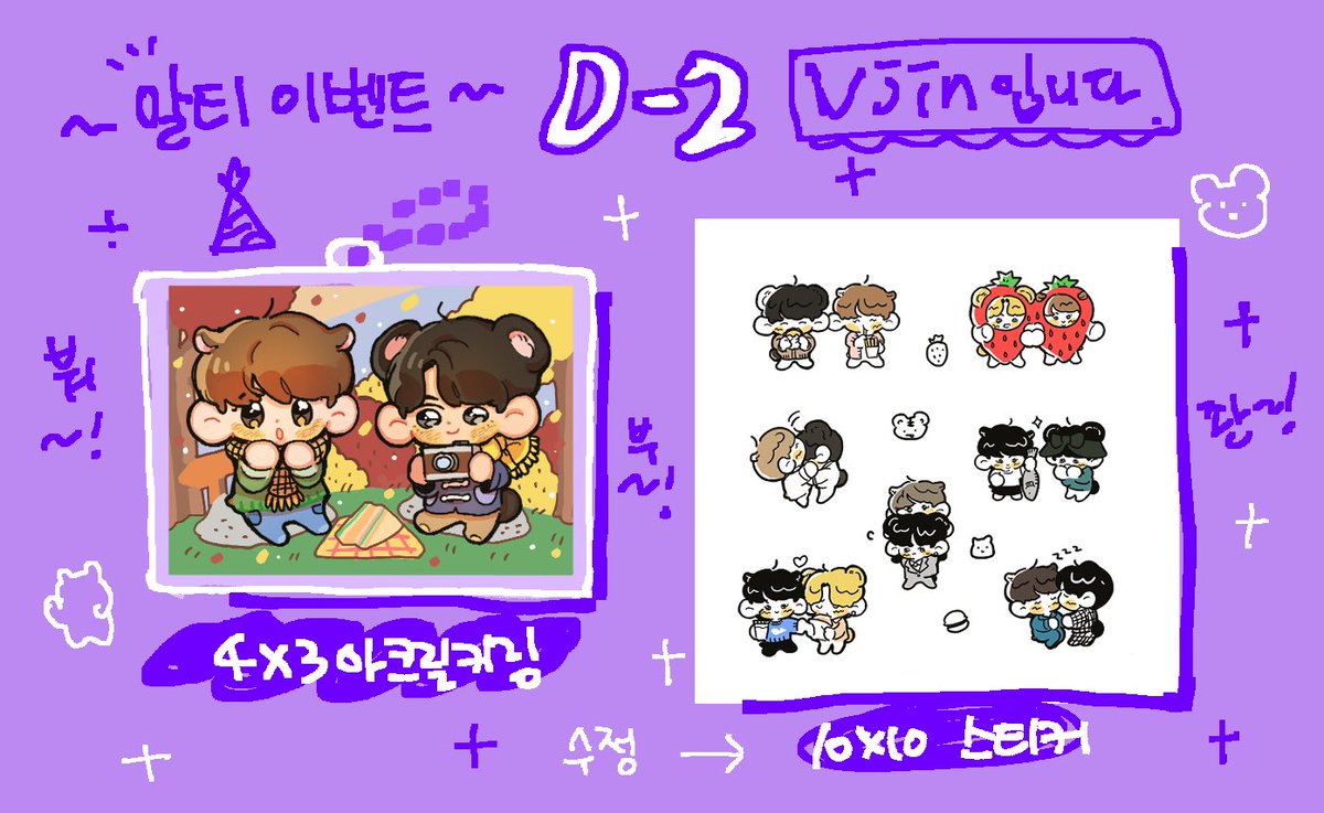 🍂D-2🥪 🎂알티해주시는 분들 중 3분을 뽑아 아크릴 키링과 스티커를 드립니다! 🥺추첨 후 제작에 들어갑니다(국내거주자한정),모든 이벤트의 스티커 크기를 줄일 예정입니다. #뷔진