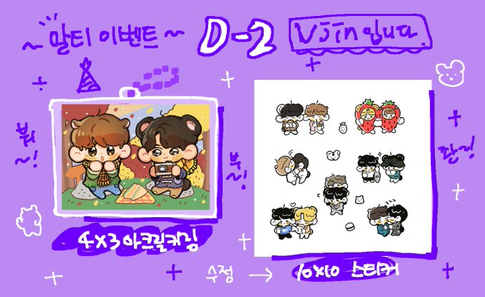 151 86 🍂D-2🥪 🎂알티해주시는 분들 중 3분을 뽑아 아크릴 키링과 스티커를 드립니다! 🥺추첨 후 제작에 들어갑니다(국내거주자한정),모든 이벤트의 스티커 크기를 줄일 예정입니다. #뷔진 20/12/02 03:14
