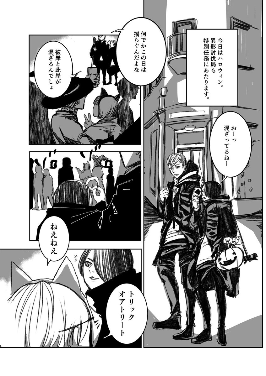 ハロウィン🎃🦇× 異形討伐局 #ハロウィン #漫画が読めるハッシュタグ #下描き #2ページ漫画 やっとかけました(´ω::.:..... アンケートにお答えいただいた皆さま、ありがとうございました...!! 清書できず申し訳ない...(´ω::.:..... twitter.com/re1o17/status/…
