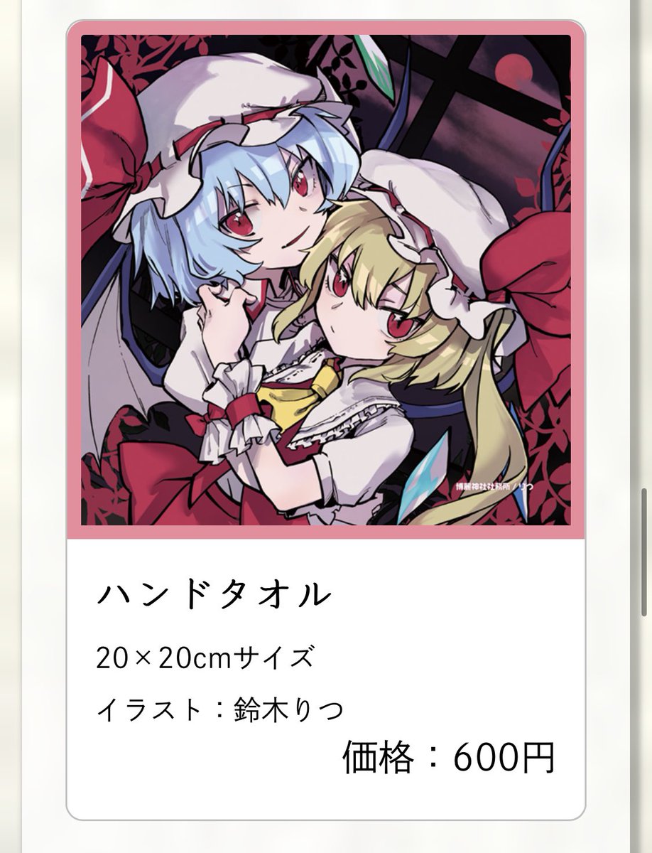 26 84 売られるようですね……鈴木りつが描いた絵柄のグッズが……例大祭の公式グッズとして…… 23/04/13 19:49