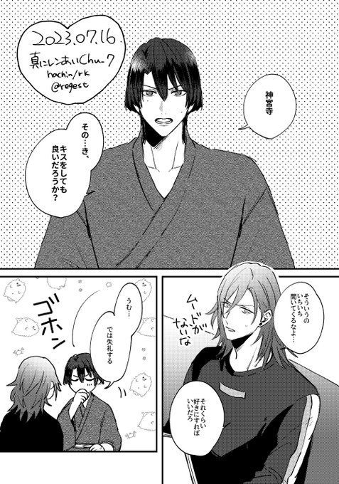 58 305 【7/16真にレン愛Chu-7💙新刊サンプル🧡】 マサレン/A5/全年齢/66P レンの脱退騒動を機に、真斗が自分とレンの関係について自問自答する話。 一応小説本Peachの二人の馴れ初め本のつもりですが、これ単体でも読めます。 (1/3) 23/07/11 00:58
