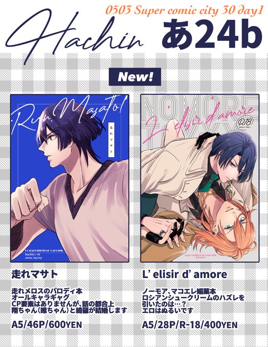 471 1252 【5/3 超プリコン💙新刊サンプル 1/3】 A5/46p 走れメロスのパロディ本です。 オールキャラギャグ。 ※話の都合上、翔ちゃん(唯ちゃん)が綺羅と結婚します 23/04/16 09:12