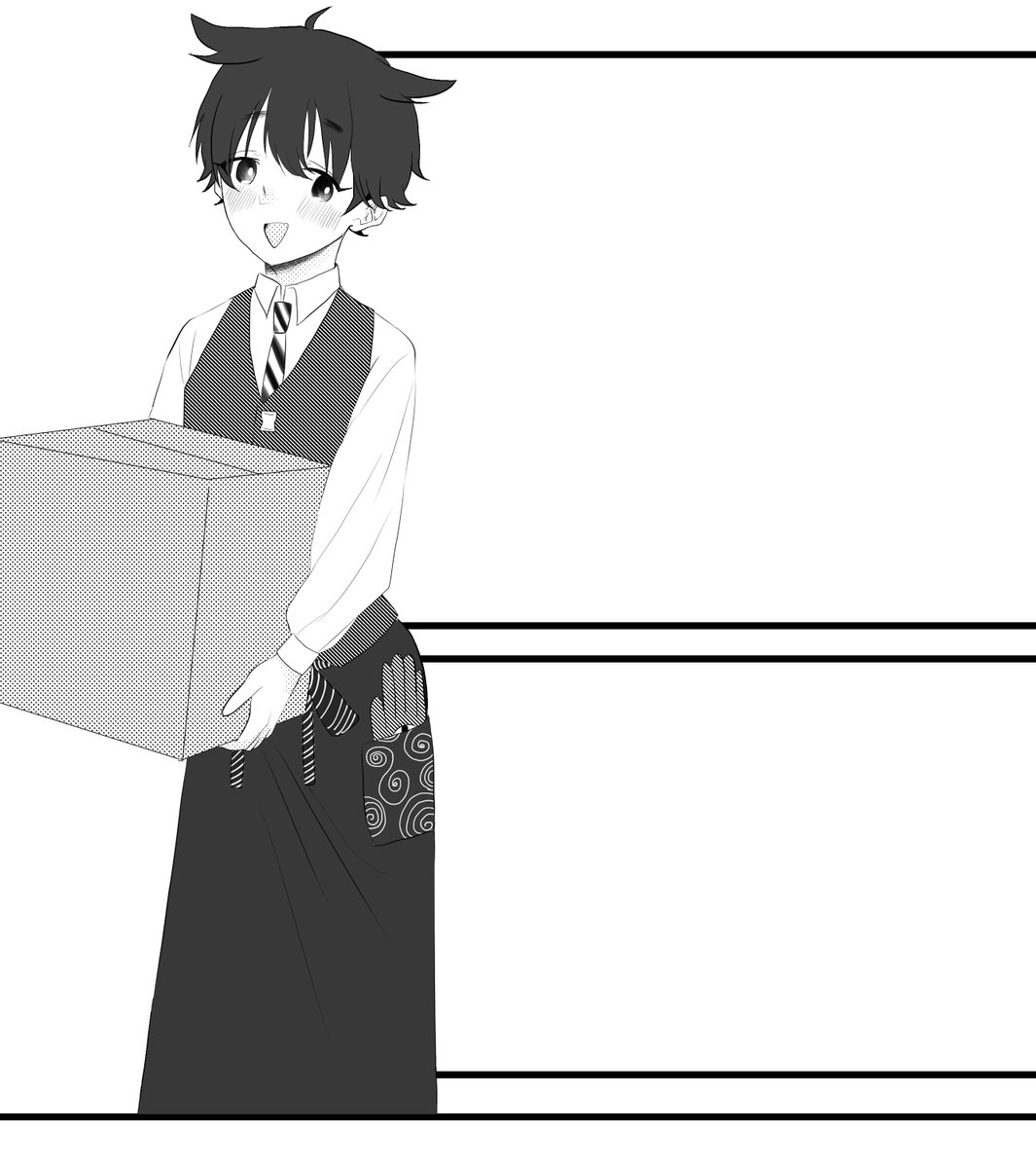 #twstプラスB クル監♂ 全力で趣味に走った新妻してる監督生(顔あり)🦐 とりあえず色だけ置いてセリフで遊びました