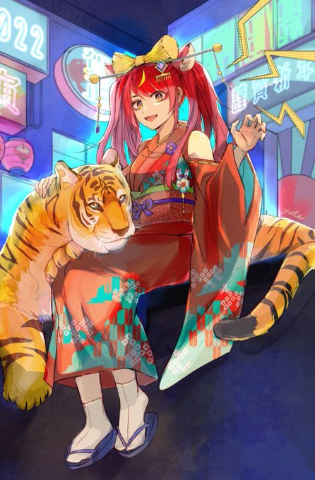 10 48 がおがお👹🐯 ポーズや性格、衣装や絵柄など色々指定してもらって描いた子 #絵描きさんと繋がりたい #イラスト 22/10/05 22:49