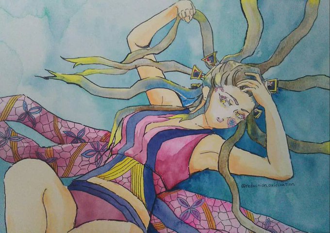 2 4 #鬼滅の刃 #鬼滅の刃イラスト #堕姫 遊郭編待ち遠しい~。 #透明水彩 #アクリルガッシュ 21/11/06 16:32