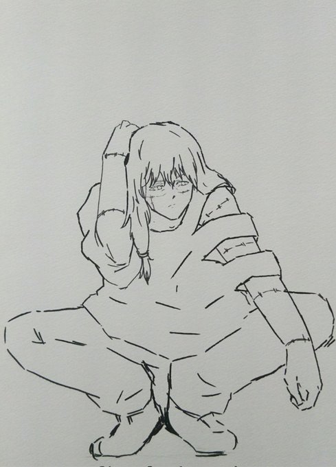 頭かいかい真人の線画晒します! #呪術廻戦 #呪術廻戦ファンアート #呪術廻戦イラスト #真人 #週刊少年ジャンプ #線画を晒すと誰かが色を塗ってくれるかもしれない