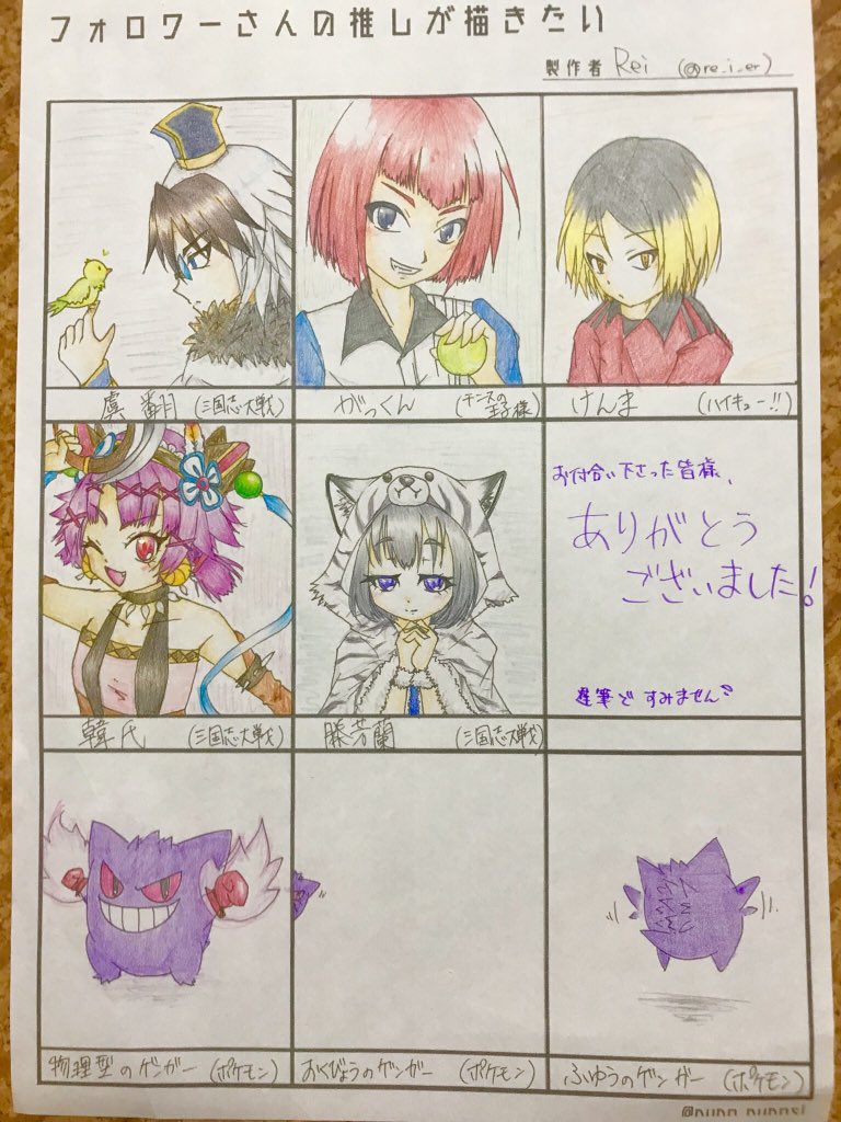5 10 今更ながらできたー。色んな絵が描けて楽しかったです! リプありがとうございました! 宣言通り、空いた枠は自らの推しで埋めておいた(╹◡╹) #フォロワーさんの推しが描きたい 19/08/02 18:36