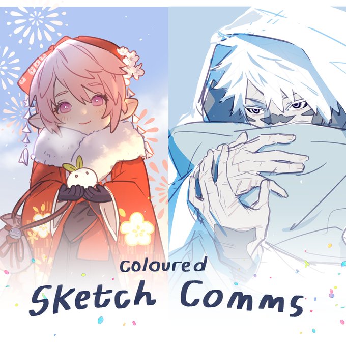 Opening coloured sketch comms like these, you can find more sample in the link below! Thank you! 🥹💕 Feel free to DM or Email if interested! rekioo.carrd.co/#sketch