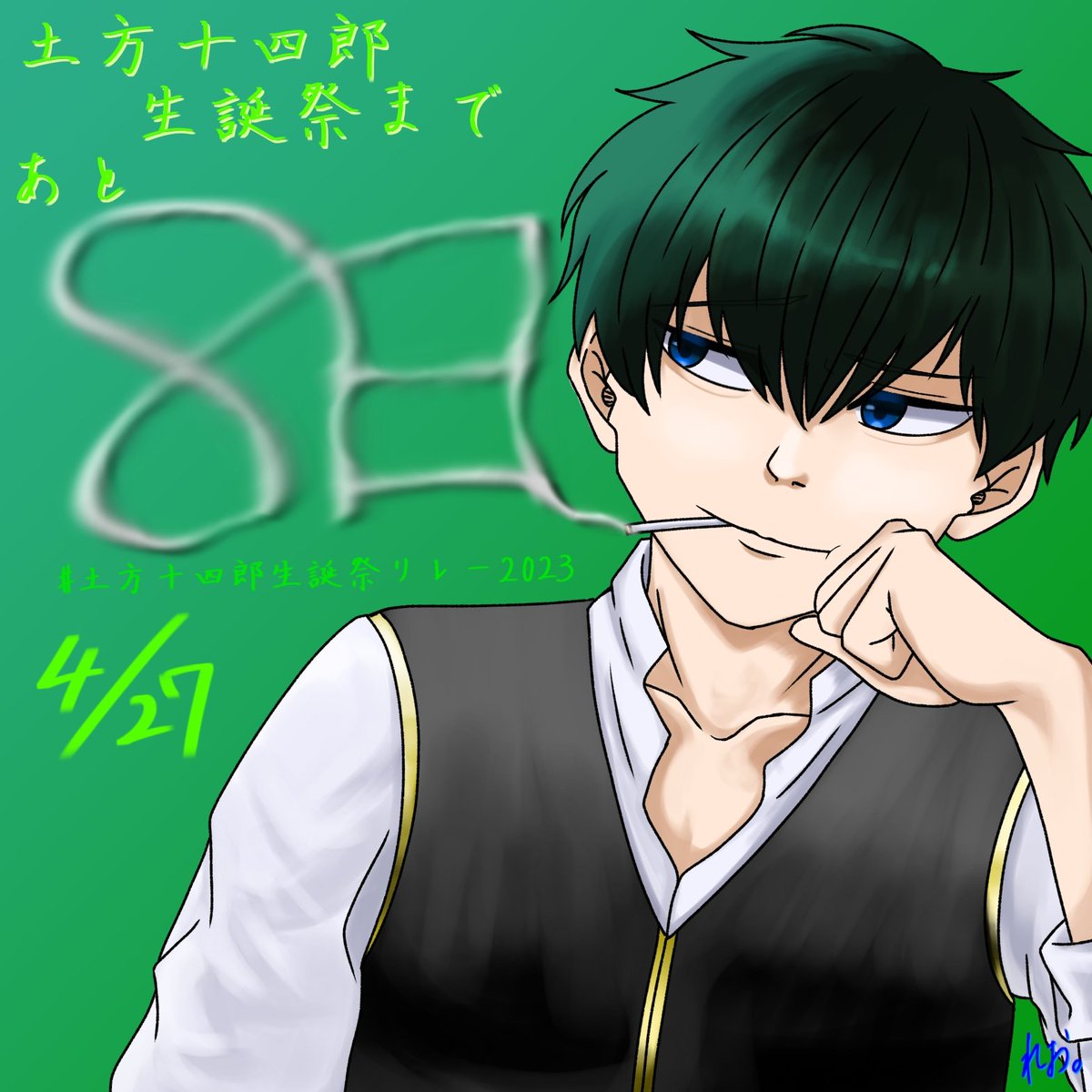 【生誕祭カウントダウン企画】 土方さん生誕祭まであと8日!! 8日ということでヤニ🚬 タバコを吹かす姿が最っ高に似合う色男!! 上にも下にも大変な人たちがいますが、吸い過ぎにはお気をつけて!! 明日もあるのでお楽しみに! Next→夏奈(@55g_kana) #土方生誕祭リレー2023 #土方生誕祭2023