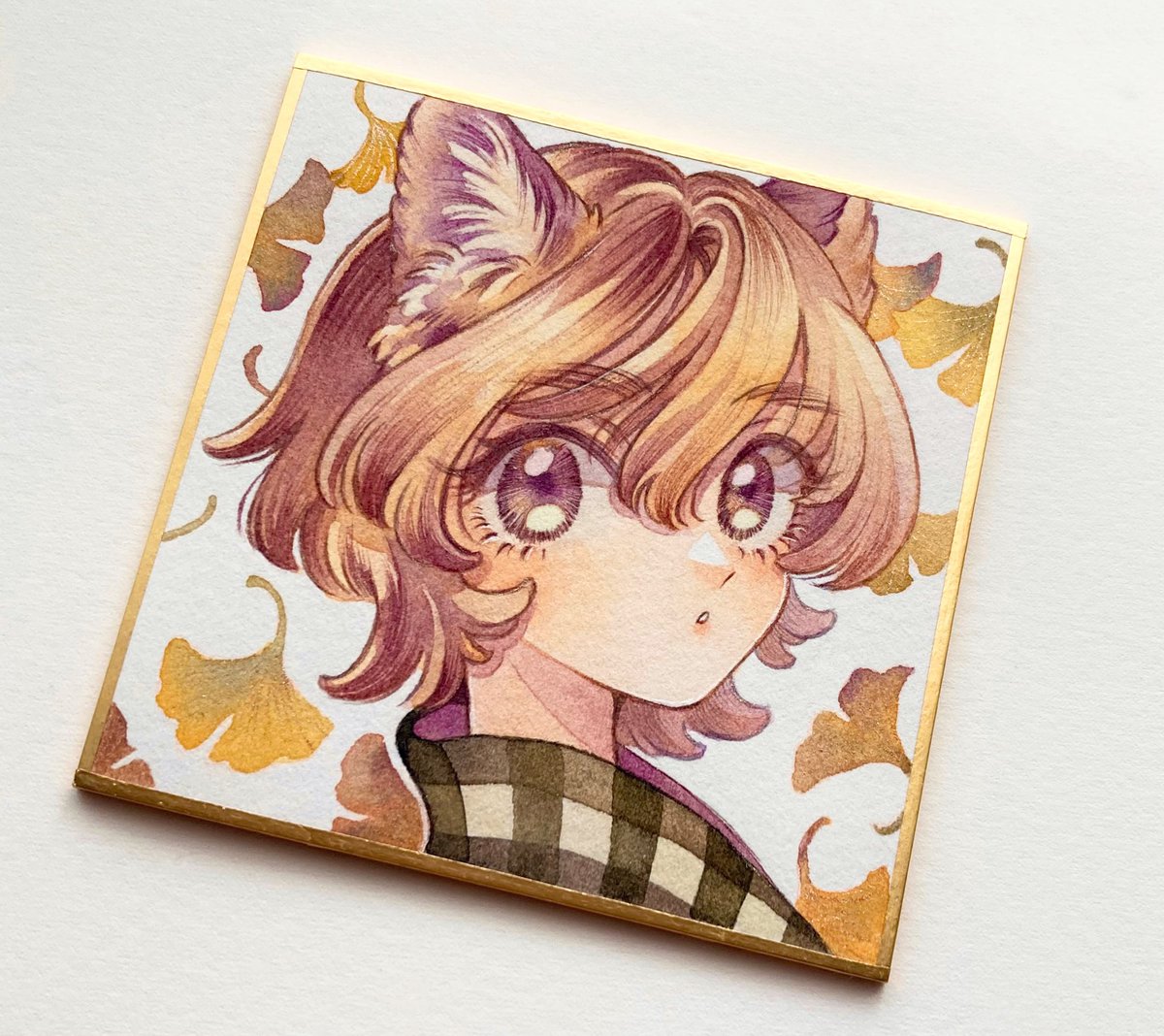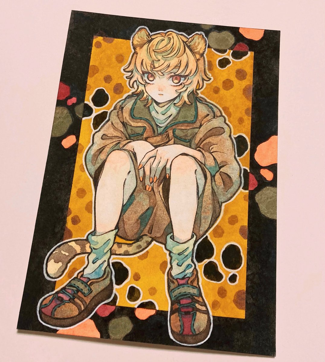 19 87 ウォーターフォード細目の豆色紙を 使いました💗 前回はサンフラワーA画🐈⬛✨ 細目と中目どっちも好き! #アニマルパレード展 #コピック 22/12/30 11:07