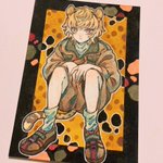 15 87 チーターくん🌟 背景はシンプルに白で予定してましたが 絵の具が飛んでしまい…! ガッツリ塗りました🎨 派手目です🙈 #透明水彩 23/01/21 12:33