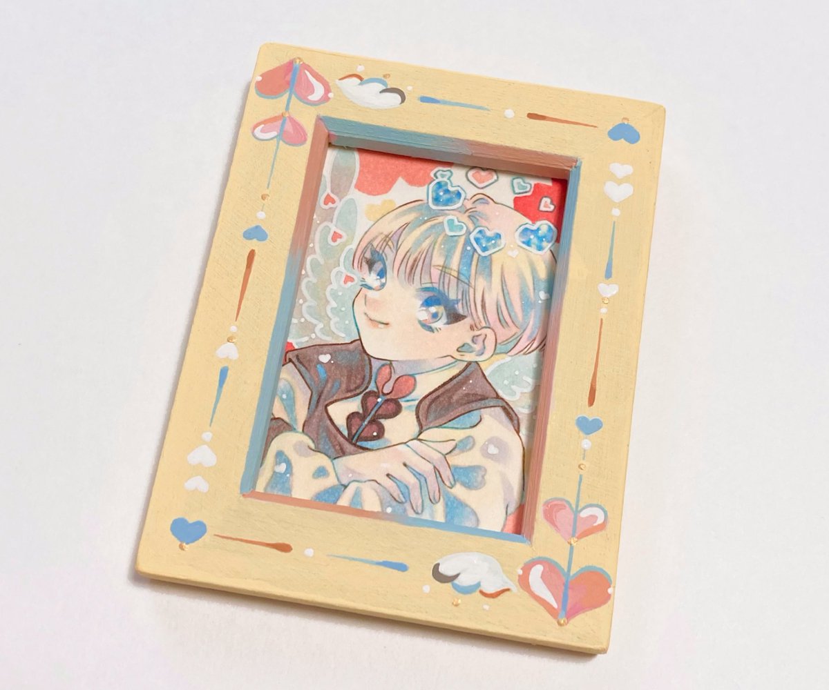 イラスト久しぶりです…🙇♀️! ミニ額塗ってみました なれない作業で難しかったです😵 #コピック