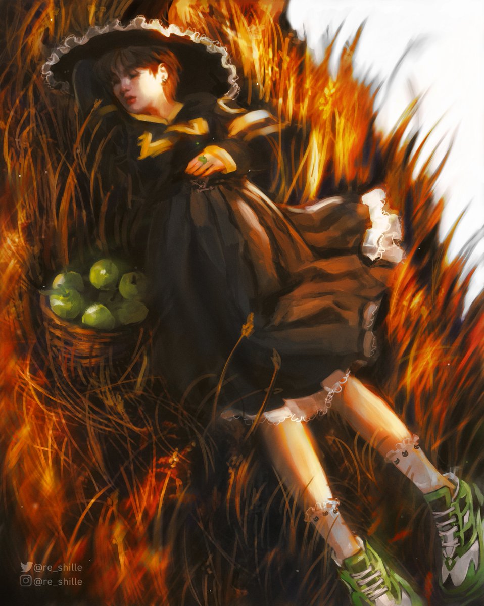 🍏𝒯𝒽𝑒 𝓁𝒾𝓉𝓉𝓁𝑒 𝓌𝒾𝓉𝒸𝒽 Yoongi in this Vogue skirt, but with a witchy twist. [#btsfanart #Yoongi]