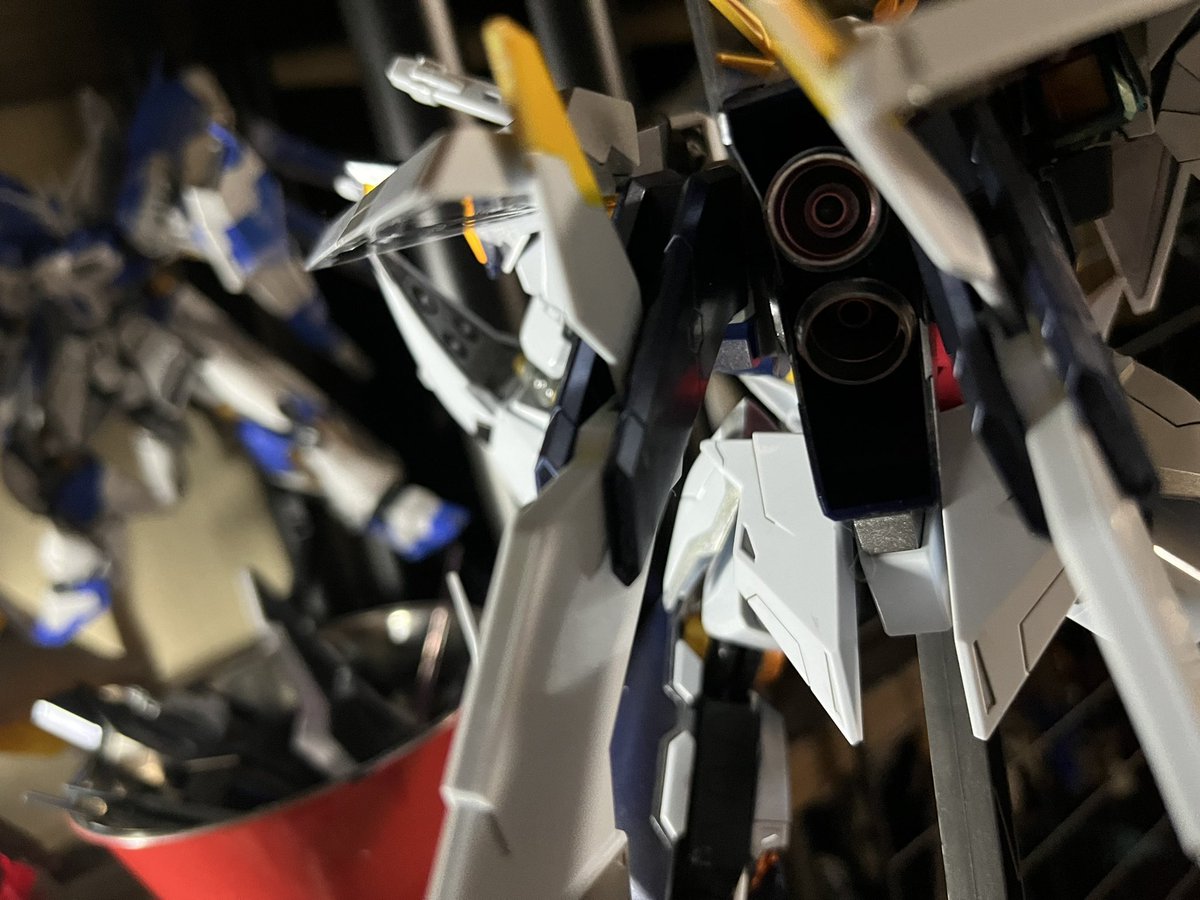 個人的にはクスィーもすごい綺麗にできてて好き。斜め上から見てもかっこいいし、頑張ったバーニアはほんと見えないけど周りシルバーの中ロイヤルレッドが上手くいったなぁ #ガンプラ #ガンプラ好きと繋がりたい #ガンプラの画像貼るとRTされると聞いて #ガンプラの画像を貼るとRTされると聞いて