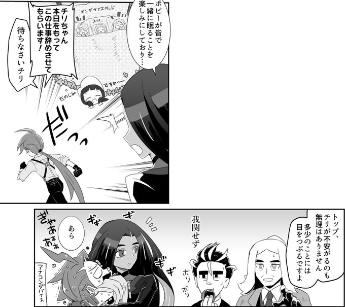 172 1065 5月オルスタで出るはずのSV四天王+トップ本サンプルです~!50P予定。 内容は8割ギャグ2割まじめ、大人たちのアホさが増してますがよろしくお願いします。サンプルツリーに続きます。 23/05/03 01:59