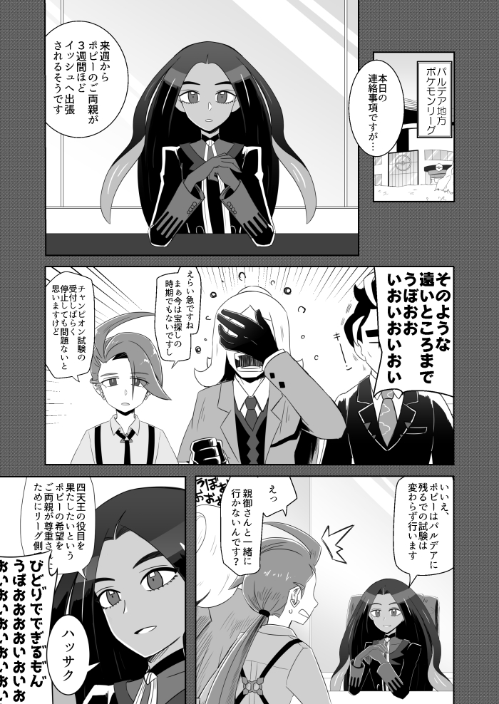 5月オルスタで出るはずのSV四天王+トップ本サンプルです~!50P予定。 内容は8割ギャグ2割まじめ、大人たちのアホさが増してますがよろしくお願いします。サンプルツリーに続きます。
