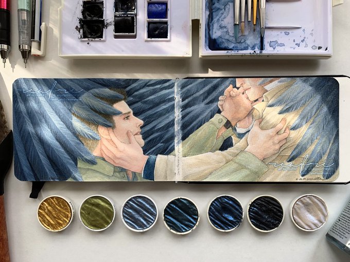 30 104 Remember this Little Fledgling Castiel? He has grown up. 'Heaven Castiel' art by reafre date 16-18 June, 2022 pencil & watercolour on paper #castiel #supernaturalfanart #reafrewings twitter.com/reafre/status/… 22/06/19 14:28