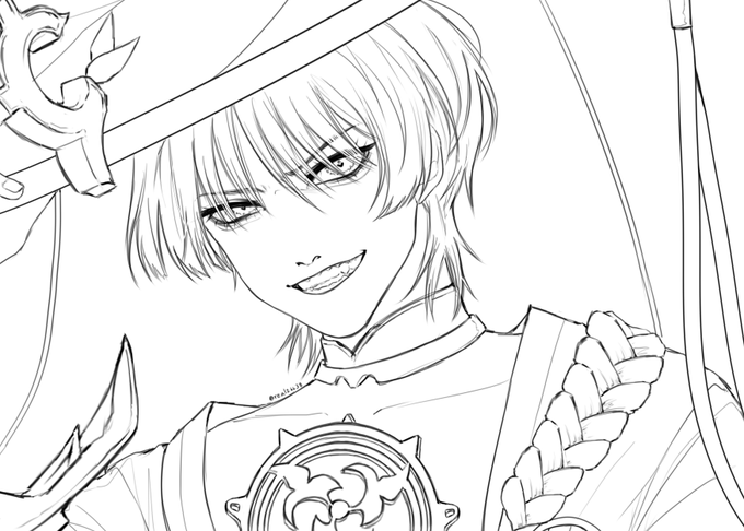 แจกรูปให้ไปลงสีเนื่องในฐานะวันเด็กค้าบ ʕ•́ᴥ•̀ʔっfeel free to coloring ! BUT ! - don't erasing my credit - don't trace or commercial use #genshinimpactfanart #scaramouche