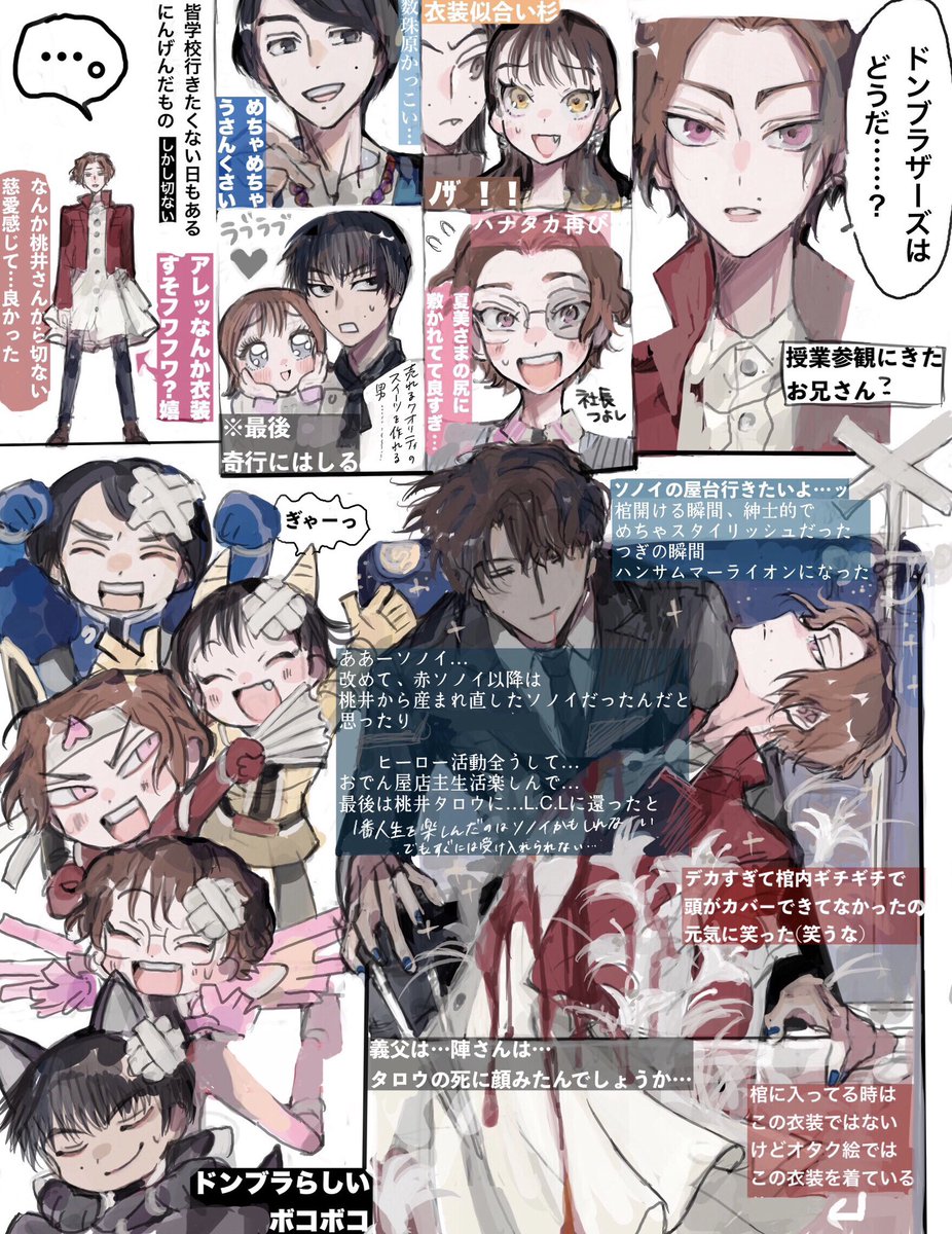 倒そうとしてるのか守ろうとしてるのかわからん闇ジロウと半ガワ金桃 お前が死んだら俺はどう生きれば…?と言ってたのが好きだった、、もう1人のジロウと一緒に超えるまでそこに居て、、超えるまで守って、、
