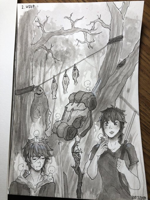 Day 2: WISP “We rest from the travels “, and a group of wisps appear” : : : #inktober #inktober2020 #ink #inktoberwisp