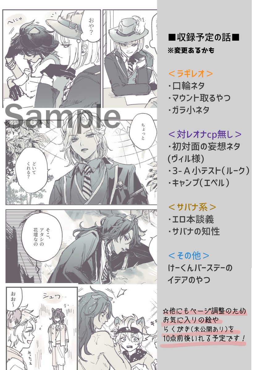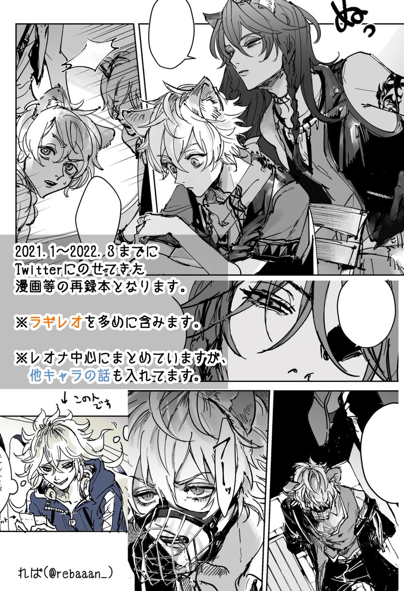 39 246 【7/24新刊サンプル】 🦁中心web再録本出します〜!! Twitterに上げていた漫画の中でレォナが出る話を中心に、お気に入りを厳選して収録しました!ラギレオのcp要素を含みます❣️ 「Re,」A5/52p〜(未定) 8月のグッコミにも持っていく予定です! 22/07/06 18:48